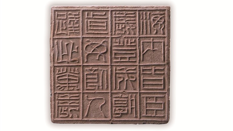 西汉铺地砖。铭文中有“岁登成孰,道毋饥人”字样,反映了西汉时归农著本、保障民生等治国思想。 资料图片